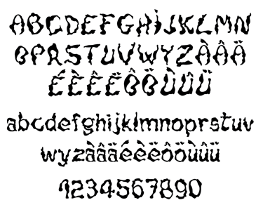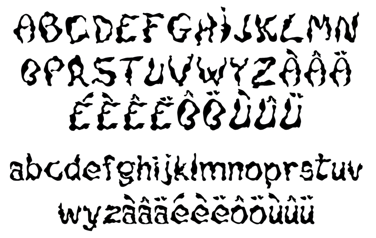 Typographie réalisée dans le cadre d'un atelier participatif d'éveil à l'écriture et au dessin de caractère. Cette session a été réalisée auprès d'enfants de 8 à 12 ans, dans le but de réaliser une police d'écriture qui leur est propre et qui raconte leur histoire collective.