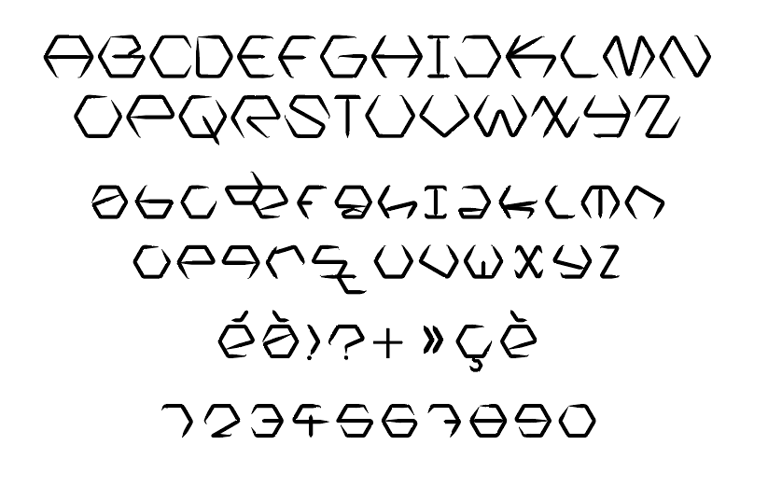 Ce caractère est né de l'observation des formes et des constructions par les abeilles. Chacun des glyphes est basé sur une grille reprenant le motif des alvéoles des rayons d'une ruche. Les ligatures venant souligner cette architecture toute en imbrication et en optimisation !